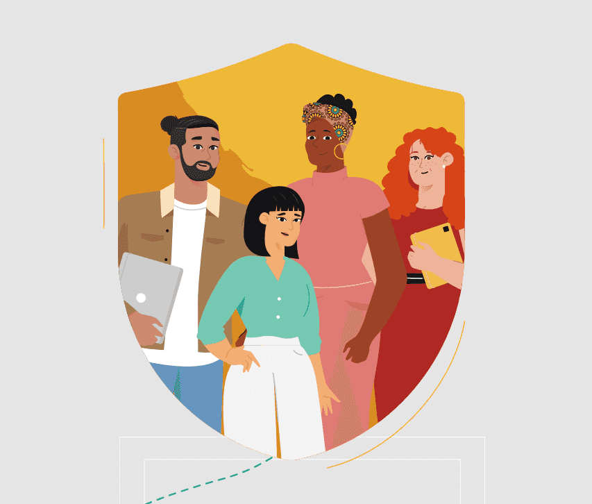 Illustration of 4 corporate looking adults of diverse backgrounds